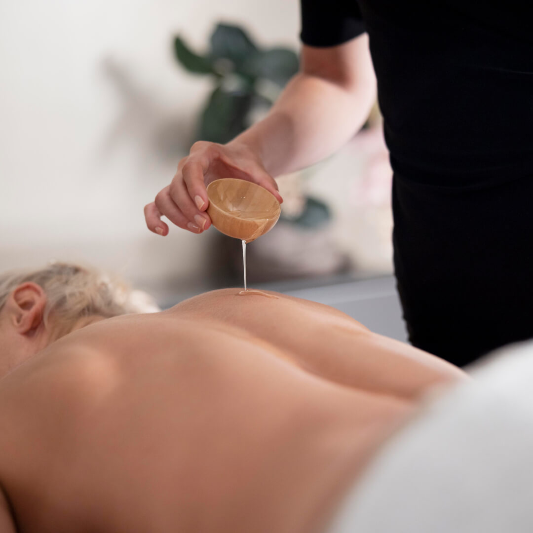 • A gentle massage with warm herbal oils infused with natural healing properties.