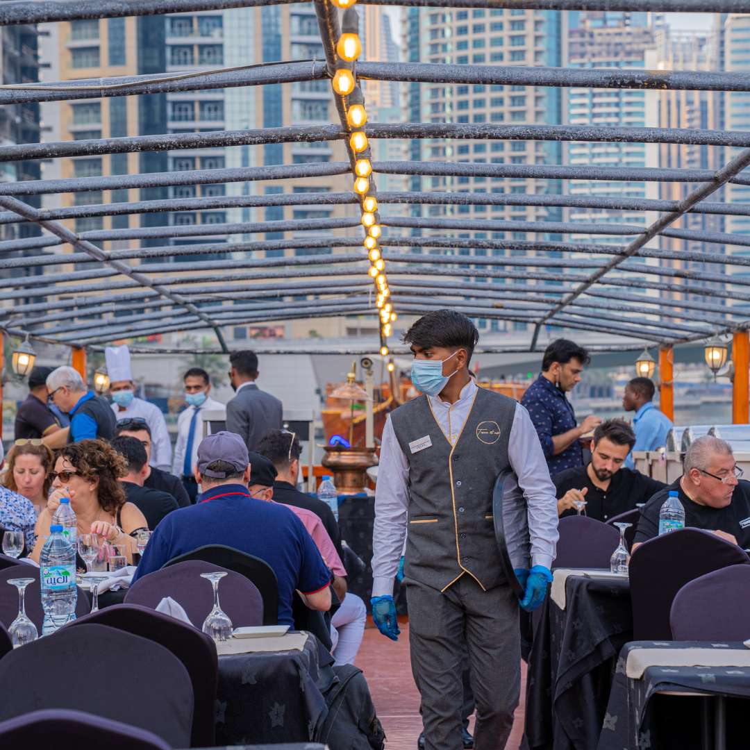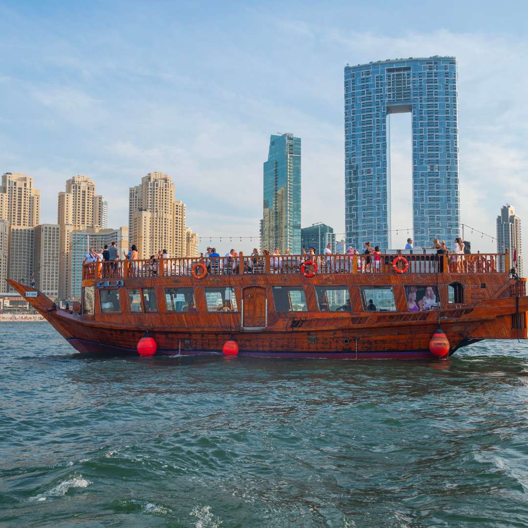 As the sun sets over Dubai Marina, board a beautifully lit dhow boat and cruise through one of the city’s most iconic waterfronts. The shimmering skyline of towering skyscrapers, luxury yachts, and waterfront landmarks provides a perfect backdrop for an unforgettable evening. Savor a delicious buffet dinner featuring a mix of international and Arabic cuisine while soft music and ambient lighting set the mood. Whether you’re celebrating a special occasion or simply unwinding, this cruise delivers elegance and relaxation.