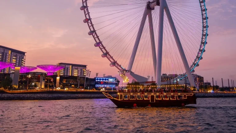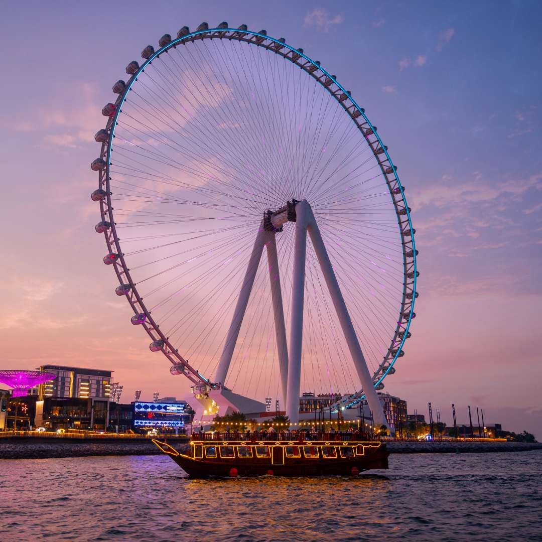 Drift along Dubai Marina during the golden hour, surrounded by the city’s futuristic skyline as the sun dips below the horizon. The cruise offers a blend of scenic beauty, fine dining, and a relaxed ambiance perfect for romantic evenings or memorable group gatherings. Live the luxury lifestyle as you enjoy smooth, door-to-door private transfers and impeccable onboard service. With stunning views of Ain Dubai and the glittering skyscrapers of JBR and Marina, this sunset dinner cruise captures the essence of Dubai’s vibrant waterfront charm.