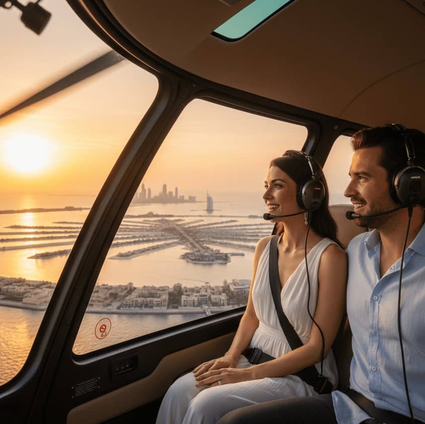 Experience Dubai from a breath-taking new perspective with a premier helicopter tour departing from Atlantis The Palm. Soar above the sparkling Arabian Gulf and witness the architectural marvels of The World Islands and the iconic Burj Al Arab.