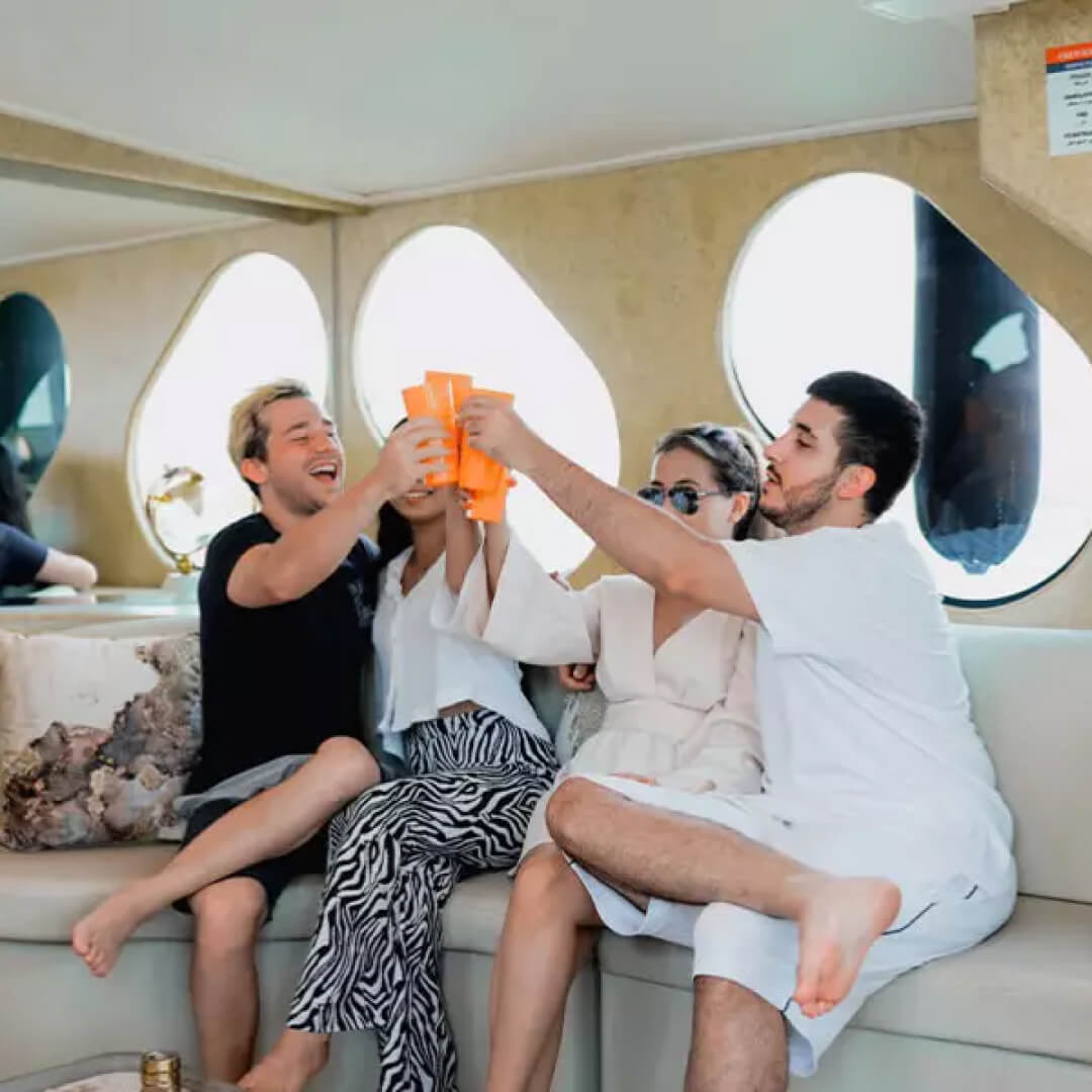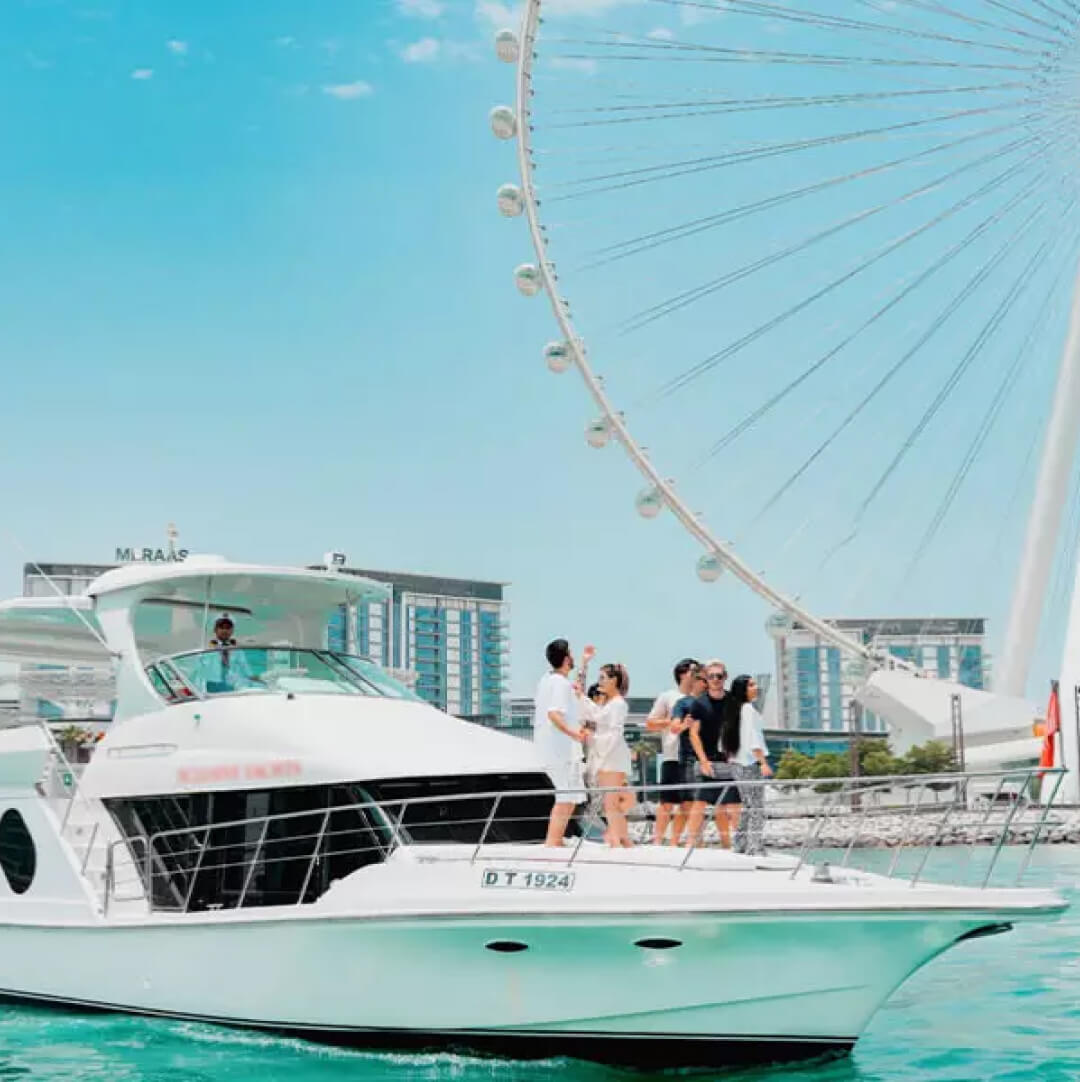 Cruise through the heart of Dubai Marina aboard the luxurious Bluewater Yacht, taking in breathtaking waterfront views and the vibrant city skyline. Relax on the air-conditioned lower deck, ideal for escaping the heat while enjoying the scenery in comfort. Pass iconic landmarks including Ain Dubai, the world’s tallest observation wheel, and the stylish Jumeirah Beach Residence, offering perfect photo opportunities at every turn. This 60-minute tour is ideal for couples seeking a romantic outing, families looking for a fun-filled experience, and friends wanting a leisurely escape on the water. With attentive crew service, a smooth sailing experience, and panoramic views at every angle, this tour promises memories that will last a lifetime.