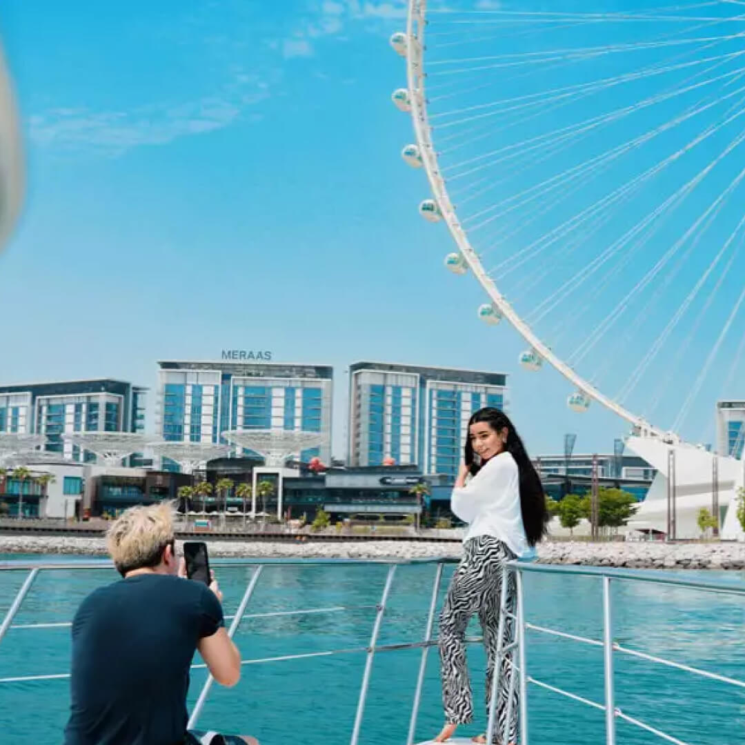 Sail past Ain Dubai and Jumeirah Beach Residence.
