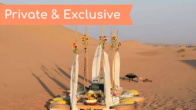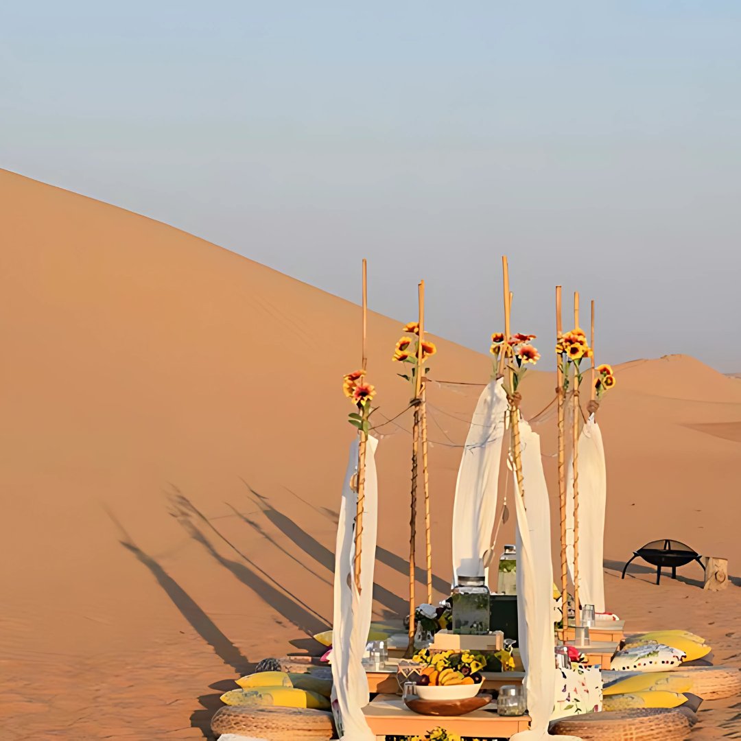 Share a magical desert evening designed exclusively for two. Whether you’re celebrating something special or simply seeking quiet luxury, this private desert dinner offers a perfect blend of privacy, natural beauty, and warm Arabian hospitality. With flexible departure cities and a highly personalized setup, this is one of the most romantic experiences you can have in the UAE.
